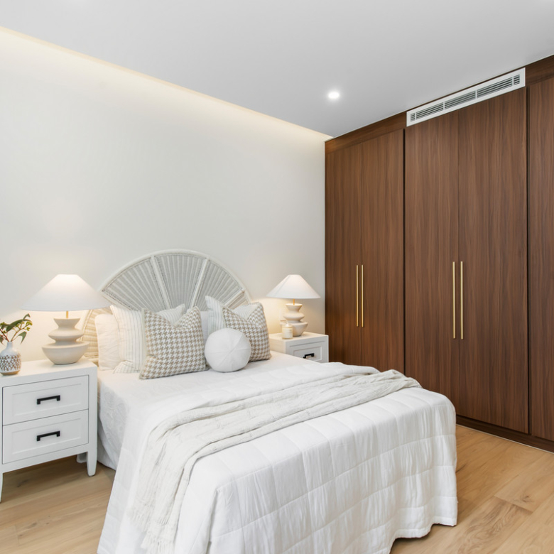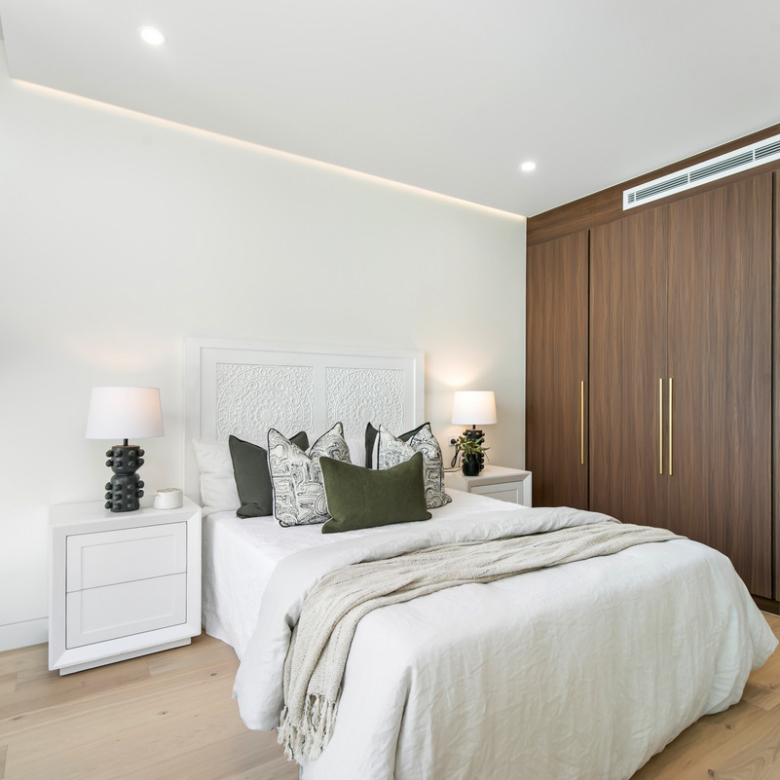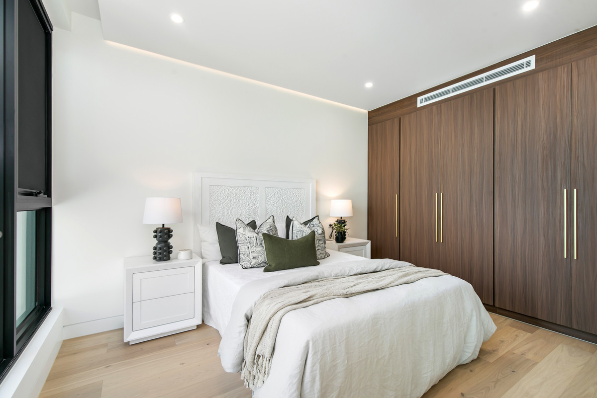 * Main master bedroom complemented by a spacious walk-in wardrobe, thoughtfully designed with extensive cabinetry for effortless storage and organisation