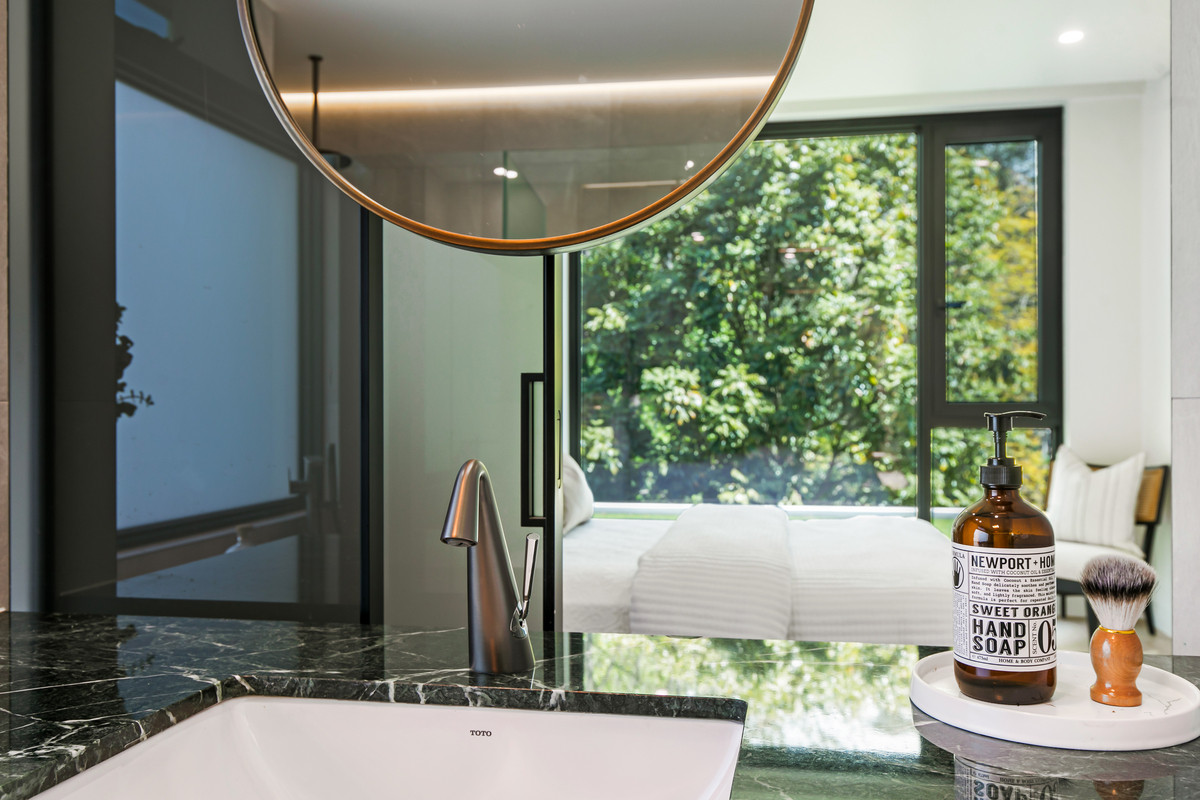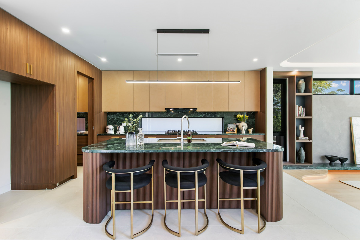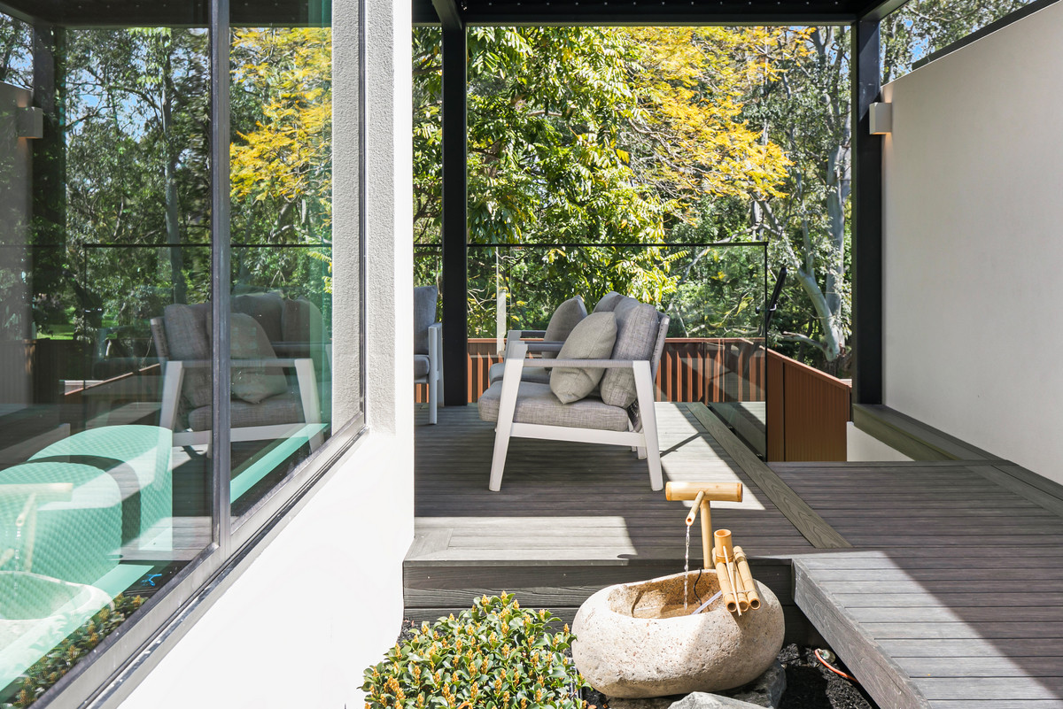 The outdoor spaces are equally impressive with a Japanese-style zen garden, a uniquely designed courtyard, and a designer timber deck bridge connecting to the undercover patio featuring a built-in BBQ facility. Additionally, Vergola with a remote-controlled opening system provides flexible, weather-proof entertaining options.