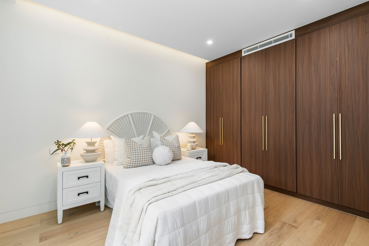 * Main master bedroom complemented by a spacious walk-in wardrobe, thoughtfully designed with extensive cabinetry for effortless storage and organisation