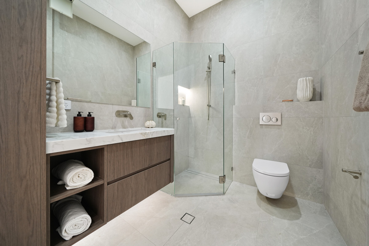 You’ll find five spacious bedrooms, all with built-in wardrobes, including a luxurious master bedroom with a walk-in wardrobe and automatic curtain and blinds, ensuite and private undercover balcony overlooking the magnificent district and Parramatta city views – a perfect retreat to unwind and enjoy the scenery.