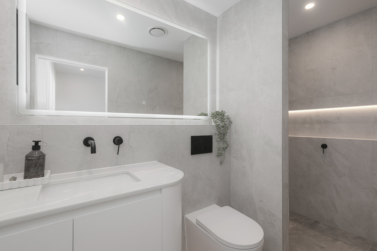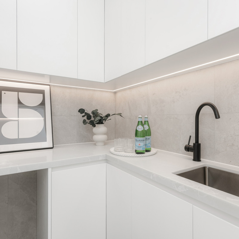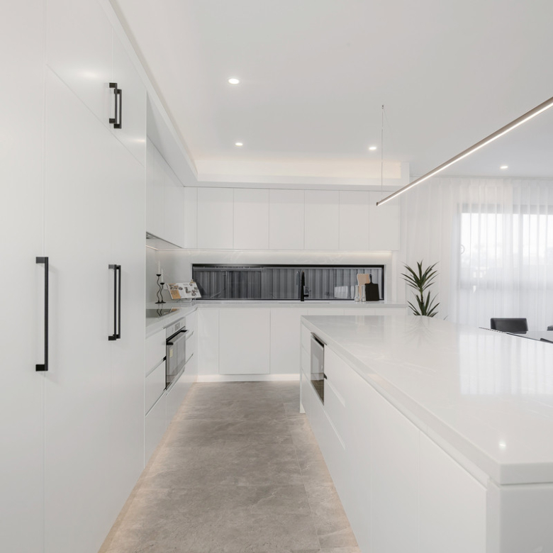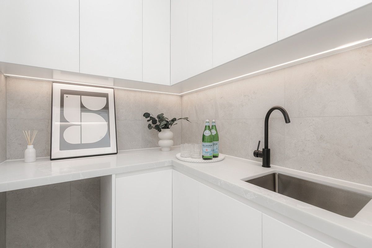 • Kitchen appointed with premium Bosch integrated appliances, including microwave, oven and dishwasher, along with a fully integrated refrigerator, induction cooktop with provision for gas connection within cabinetry, and a silent Schweigen (German-engineered) rangehood