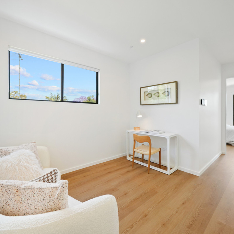 Step inside to discover timber floorboards extending from the staircase through all bedrooms, creating a warm and contemporary ambience throughout. The open-plan living area flows seamlessly into a formal dining space, offering flexibility for both everyday living and entertaining. Upstairs, a dedicated family retreat provides a private space for relaxation, study, or casual living, perfectly complementing the home’s versatile layout.