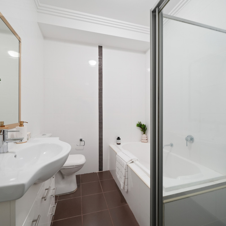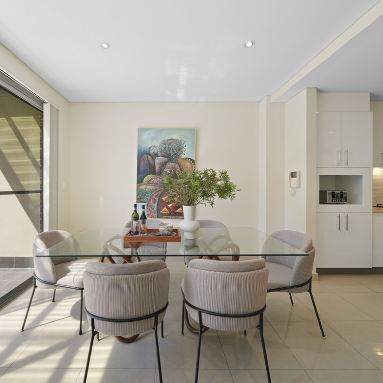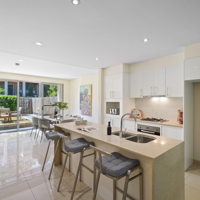 The home features three generous bedrooms, with the master bedroom boasting its own ensuite for added privacy. The open-plan living and dining area flows seamlessly, complemented by a well-appointed kitchen with gas cooking, dishwasher, and ample cupboard space.