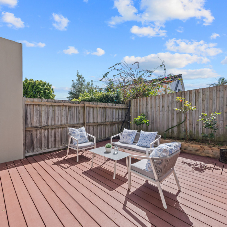 * Spacious backyard with full decking, ideal for outdoor entertaining, family gatherings, and easy low-maintenance living