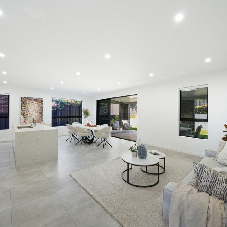 * Spacious light-filled open-plan living and dining area flowing seamlessly to the alfresco